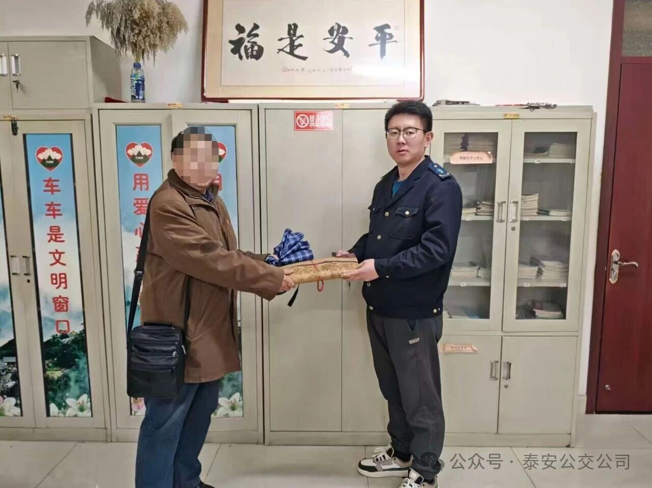 1月18日,泰安市民程先生專程來到泰安公交第三分公司辦公室,順利領(lǐng)回失而復(fù)得的一摞重要文件,當(dāng)場向39路公交駕駛員及工作人員表達(dá)誠摯謝意,對公交人履職盡責(zé)、拾金不昧的作風(fēng)連連稱贊。