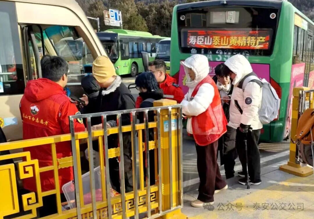 與此同時(shí),天外村景區(qū)作為元旦假期客流高峰區(qū)域,游人如織。“泰山百合”志愿者們?cè)谔焱獯骞徽军c(diǎn)及周邊重點(diǎn)區(qū)域堅(jiān)守崗位,全力開展志愿值守與便民服務(wù)。志愿者們精神飽滿地引導(dǎo)乘客有序排隊(duì)上下車,耐心解答公交線路、換乘路線、景點(diǎn)方向等咨詢,主動(dòng)協(xié)助老人、兒童及攜帶行李的游客安全乘車,及時(shí)疏導(dǎo)站臺(tái)及周邊人流,有效避免擁堵。針對(duì)外地游客,志愿者們化身“活地圖”與“城市宣傳員”,熱情介紹泰山文化、推薦游覽路線,充分展現(xiàn)了泰安公交人及泰安市民的良好精神風(fēng)貌與文明形象。